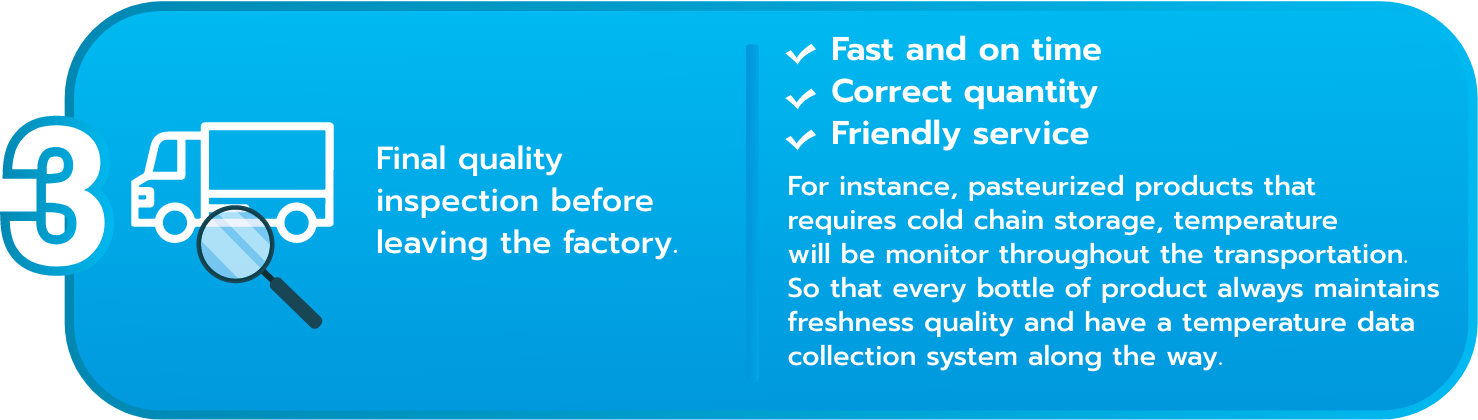 One of the most important elements of Dutch Mill's success is the attention to quality in every step of the way. This is the basic practice of the company to build confidence food safety and good benefits before reaching the consumer starting from a dairy farm raw milk collection center process of production, packaging, and distribution before delivering to consumers to provide standardized products with 100% quality assurance.